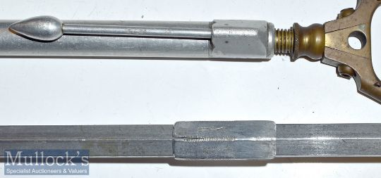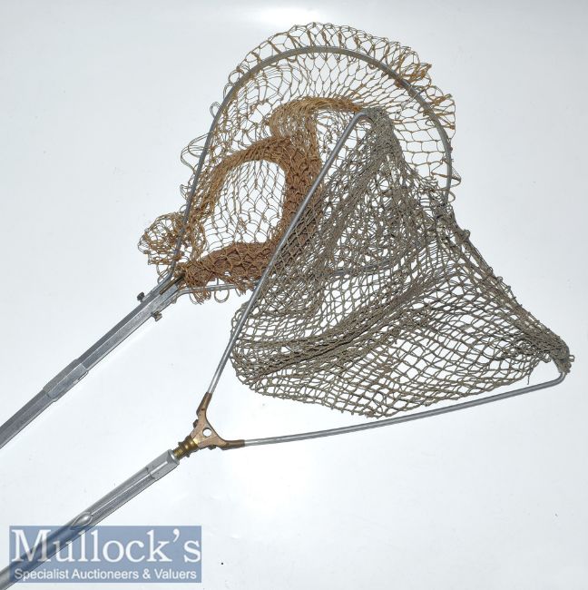 Ogden Smith London alloy folding landing net shaft measures 60cm approx. with circular head together with another alloy folding Y shaped landing net with extendable handle measures 67cm when extended (2)