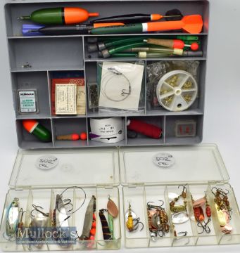 Mixed Assorted Spinners, Pike Floats and Accessories incl Abu, Mepps, 4x pike floats, hooks, swivels etc, all housed in 3 cases (qty)