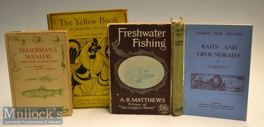 Interesting selection of Fishing and other related books (6) to include J P Moreton and W A Hunter “Fisherman’s Manual - Fish & How to Catch Them” c1959 /w dust jacket (F/G); A R Matthews “Freshwater Fishing” 1st 1920 in original pictorial boards (front board loose) – illustrated c/w interesting Advertisements from Hardy, Zephyr Floats, Gamage’s, Carter, Albert Smith, Foster Bros, Little, James Ogden et al; ‘Faddist’ - “Baits and Groundbaits” 2nd 1952 original wrappers (G); plus “Nature Through the Year” 1946 illus (G) ; US Publ’d “The Yellow Book An Illustrated Quarterly” Vol. XIII 1897; and A Wanless - “Angler’s Creel” A/F - condition mixed