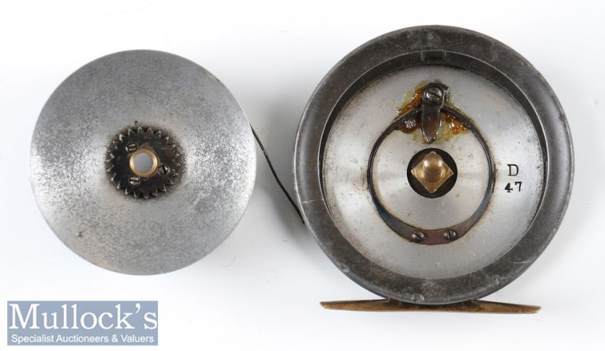 Walter Dingley Westley Richards 3 ¼” alloy fly reel with an ivorine handle, telephone latch, smooth brass foot, internally, single check, internally stamped ‘D 47’, Westley Richards Birmingham maker’s oval logo to rear, appears with some signs of wear, runs smooth otherwise