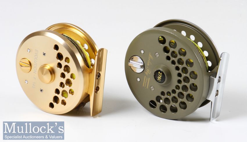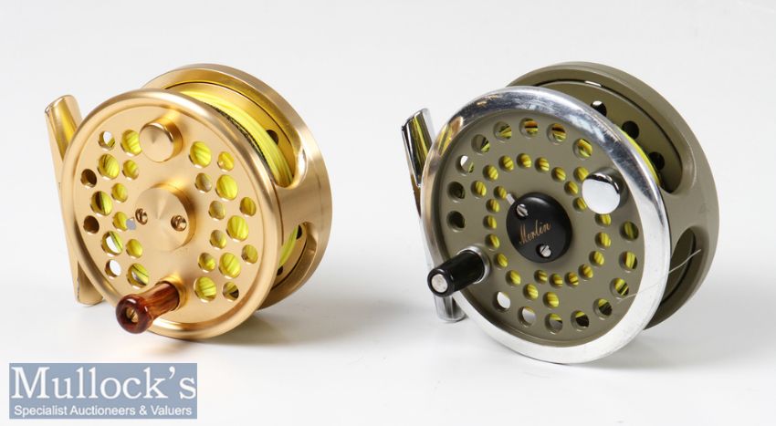 2x good fly reels to include Marado Evolution F-145 aluminium fly reel 2 ¾” with wooden handle, appears unused together with a Shakespeare Merlin Fly 2760 3” fly reel again with little or no signs of use