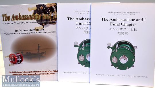 Collection of Abu Ambassadeur Fishing Reference Books (3) – Shimomura, Simon – “The Ambassadeur & I - A Collector’s Study of Classic Ambassadeur Reels” 1st ed 2000 printed in USA in the original photograph wrappers c/w endorsement by Mr Lennart Borgestrom former owner of Abu Sweden; and 2x “The Ambassador and I -Final Chapter” 1st ed 2002 printed in Korea and produced in both Japanese and English text - in the original photograph wrappers (VG)