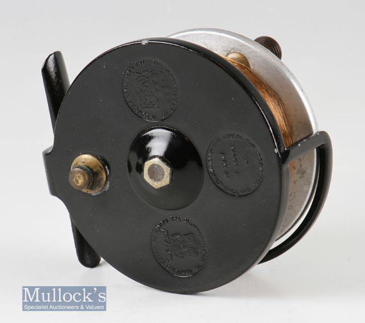 Hardy Bros Alnwick 4” Goodwin centrepin sea reel stamped by appointment to the late King George V, twin handle, on/off check, appears to have been repainted, runs smooth otherwise