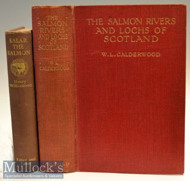 2x Salmon Fishing Books: Balfour-Kinnear, G. P R - “Spinning Salmon - A Practical Book of Instruction dealing with all methods of Spinning for Salmon” 1st ed 1938 publ’d London in the original salmon pink cloth boards with title to spine - comes with modified matching salmon pink dust jacket with laid down colour labels to the front cover and spine - interesting collection of 47x various illustrations and drawings to incl reels, tackle, rivers, et al-clean internally (G); and Salmon Fishing Book: Williamson, Henry - “Salar The Salmon” 1st ed1935 publ’d Faber and Faber London in the original brown cloth boards with gilt title to spine - map endpapers - some speckled foxing to closed pages internally clean (G)