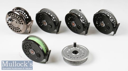 Fine Ningbo 7/8 fly reel with counter balance weight, drag adjuster appears unused together with 4x Ryobi 355MG super light magnesium fly reels and one spare spool with signs of light wear but otherwise ready to use! (5)