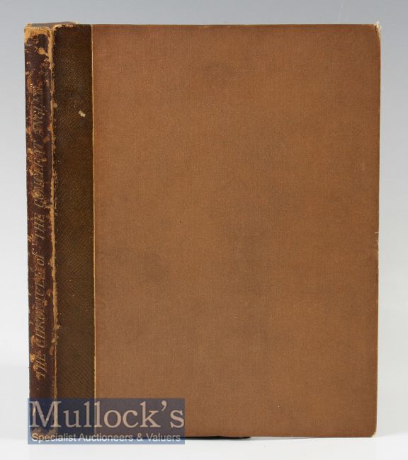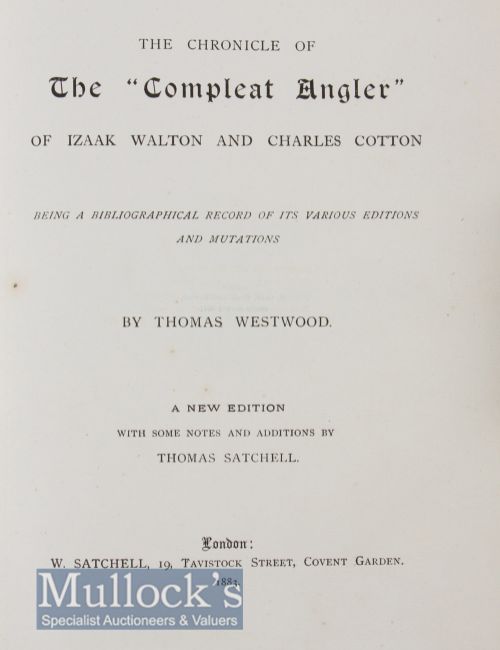 Late 19th century fishing book: Westwood, Thomas - “The Chronicle of The Compleat Angler of Isaac Walton and Charles Cotton - being a bibliographical record of its various editions and mutations” new ed. 1883 - published W Satchell London – in the original quarter brown morocco over brown cloth - gilt title to spine - top edge gilt some wear to spine – together with the printers catalogue to the rear of fishing books being published - possibly 1 of only 100 copies after 400 were allegedly destroyed in a fire – marble end plates with ex libris private book plate – very clean internally