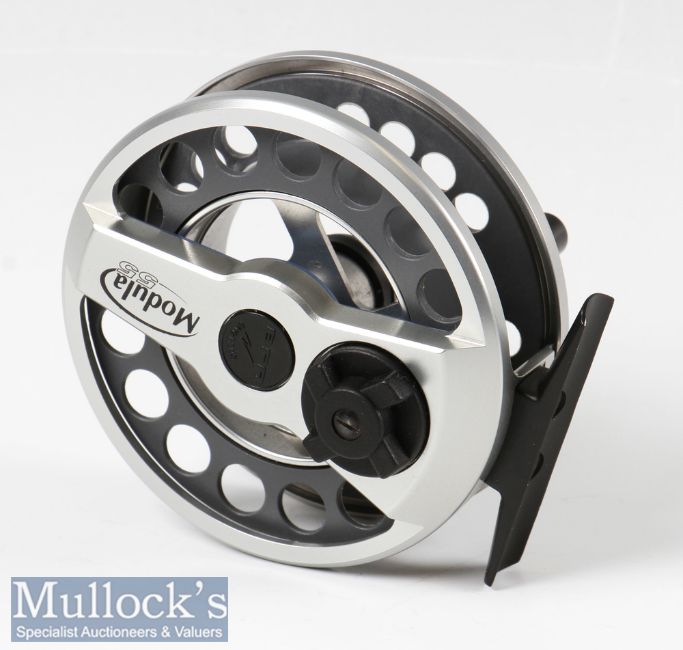 BFR Modula 55ti fly reel with cassette spools ventilated construction, appears in unused condition with neoprene case and maker’s card box