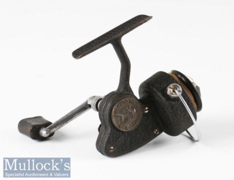 Fine and Rare Alcedo Micron spinning reel 1st type LHW, made in Italy, maker’s plaque, in black finish, on/off button check, appears in very good clean condition, spins well