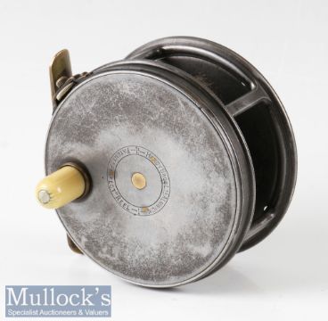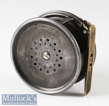 Hardy Bros Alnwick 4” perfect alloy salmon fly reel marked T internally to backplate, strap tensioner, smooth brass foot, usual light movement in handle, runs good, light wear