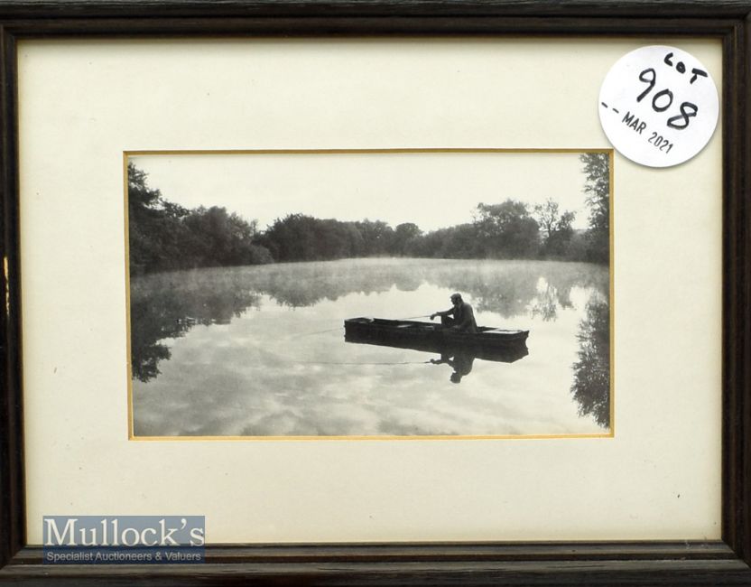Black and white photograph of Chris Yates fishing from a punt in Remire taken from the Mediah Press book ‘Four Season’, framed measures 18x24cm approx.