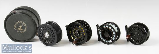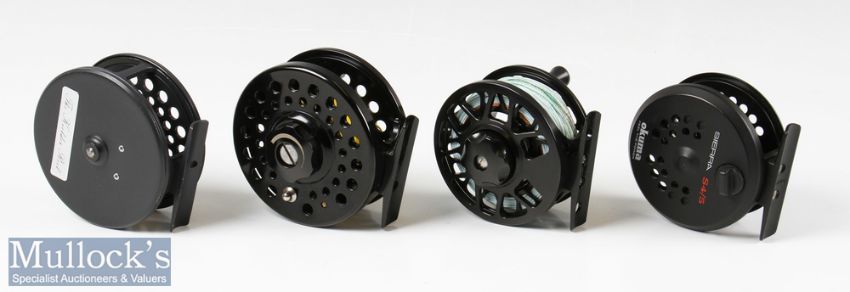 4x Various fly reels including Okuma Sierra S4/5 reel together with a Snowbee Prestige 780 reel, 3 1/8” Kielder Reel with padded zip case and an unnamed 2 7/8” ventilated reel, all appear with light signs of use or unused