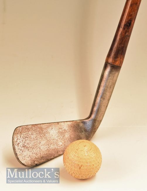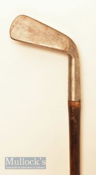 Rare Bussey patent steel socket mid iron with concave face, fitted with replaced grip