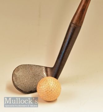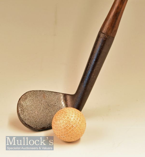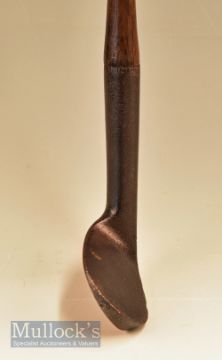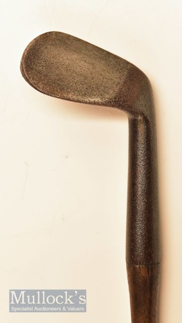 Heavy track iron with stout hosel having indistinguishable name to rear, fitted with original full length leather grip with underlisting