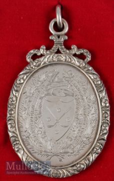 Extremely Rare 1828 Bruntsfield Links Friendly Golfing Society Edinburgh Scottish Silver Medal, hallmarked Edinburgh 1828 – played for in the Spring and Autumn Meetings - large oval medal is engraved on the obverse with Bruntsfield Crest and dated 1828 and on the reverse engraved with names of the winners to incl Douglas McEwan the inaugural winner and again in 1829, 1830and 1832 – other winners also included Alexander Kay, Thomas Geddes – overall 4.25”x2.5” – mounted framed and glazed 19” x 17” c/w image of the rear of the medal and The Patino Origins of Golf lotting label. Note purchased from The Jamie Ortiz-Patino Collection held by Christies in May 2012 with a guide £10,000 - £15,000 which was originally purchased by Patino at the Sotheby’s Auction Musselburgh July 1992. Note: Part One – Golf Collection from “David Easby Estate”