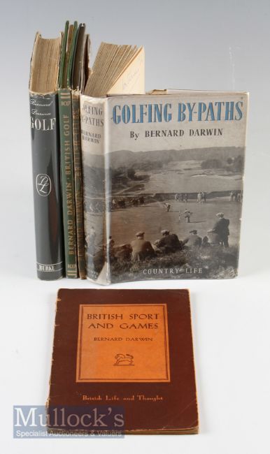 Darwin, Bernard (5) Golf Books to include Golf 1st ed 1954, British Golf 1946, British Clubs 1943, Golfing By-Paths 1946 and British Sport and Games 1946 publication – mixed condition F/G overall
