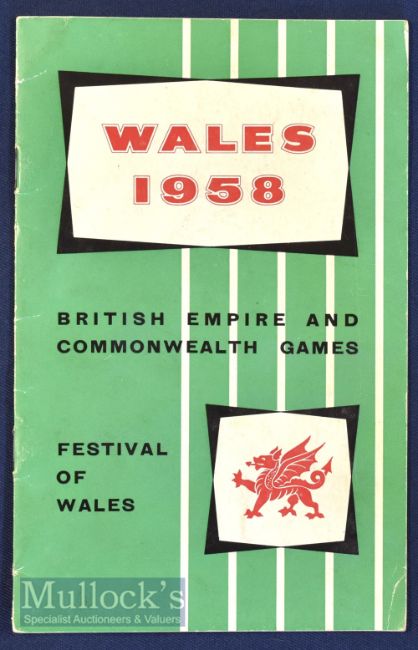 1958 British Empire and Commonwealth Games Visitors Guide – held for the first time in Wales and publ’d by Barclay Group of Banks celebrating Festival of Wales – includes Venues, Schedule of Events, Conversion tables for weights and measures