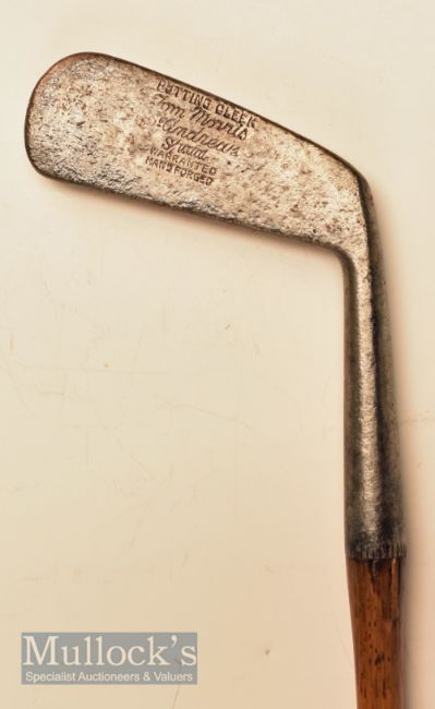 Tom Morris St Andrews putting cleek still showing the Champion decal and Tom Morris autograph special shaft stamp below the original leather grip