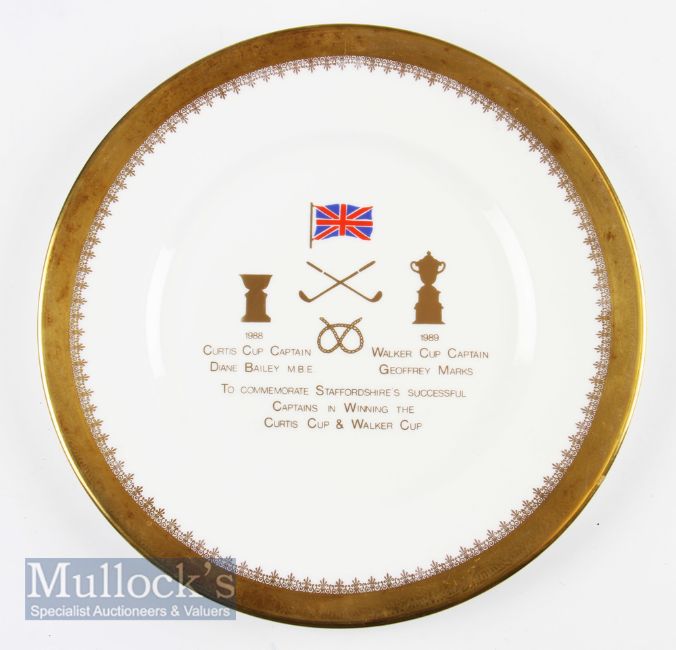 Royal Grafton Staffordshire Golf Commemorative Plate to commemorate Staffordshire’s Successful Captains in Winning the Curtis Cup and Walker Cup in 1988 and 1989, 27cm dia, overall good