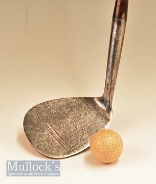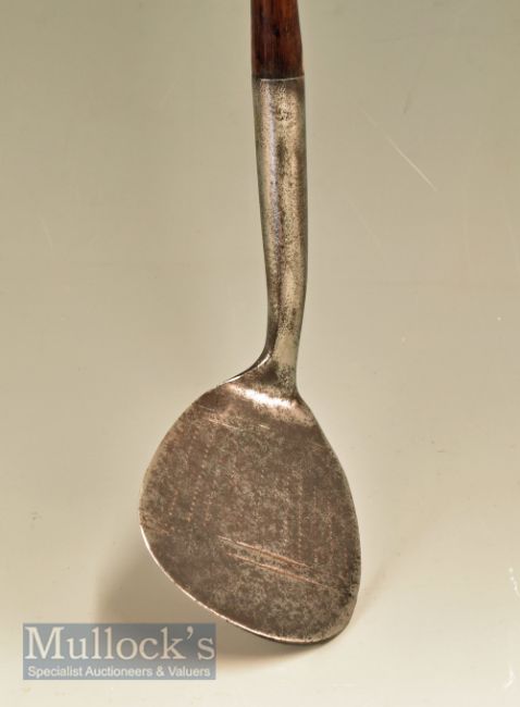 Rare Jack White Sunningdale mammoth niblick stamped with makers Sun face cleek mark to the head – made E McInnes – c/w original period leather grip