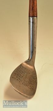 Tom Auchterlonie St Andrews Pat It-Z-it-In flange sole rustless niblick with multi line and dot central face markings – full length leather grip