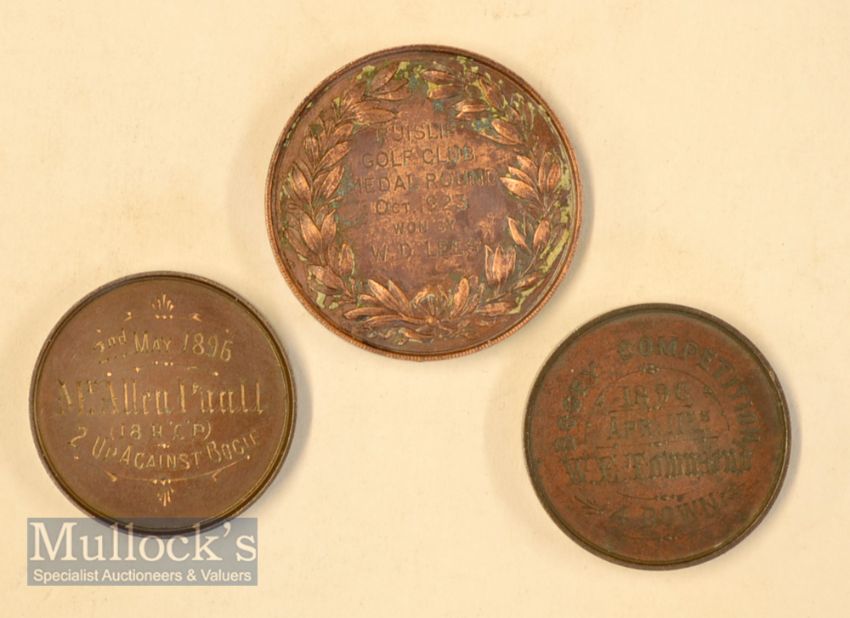 Collection of London/South East Counties Golf Club silver and bronze medals from 1890s onwards (6) 1896 Staines Golf Club Bogey Competition bronze medal engraved April 11th – 4 Down - W E Townsend – now defunct; Redhill & Reigate Golf Club Bogie Competition engraved 2nd May 1896 – Mr Allen Paull – (18 H’C’P) 2 Up Against Bogie; 1899 Datchet Golf Club (Est 1890) silver monthly medal – engraved Benson – November Medal 1899 – 104-5=99; 1922 Maidenhead Golf Club Silver Monthly Medal – T Brooks; 1923 Ruislip Golf Club Bronze Monthly Medal won by W.D Lees Oct 1923; and 1967 South Herts Golf Club Silver Medal engraves Div 1 G A W Sprosson – hallmarked 1967. Note: Part One – Golf Collection from “David Easby Estate”