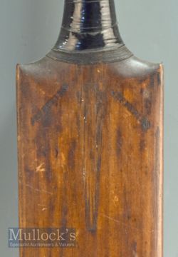 Early Jeffries Cricket Bat stamped with the maker’s mark ‘Jeffries’ to either shoulder of the face, also imprinted to the top of the handle, appears in good overall condition, having tape to handle