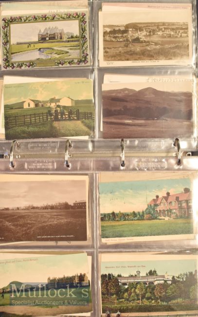 Large quantity of early Golf Postcards including a wide variety of topographical postcards featuring Prestwick, St Andrews Links, Skegness, North Berwick, Monifieth, Gullane, Banff, Epsom Downs, Milford, Antrim, St Annes-on-Sea, Painswick, Leven, Portrush, Newquay, Pentire, Walton-on-Hill, Woking et al, mixed condition, generally appear in G overall condition, within folder with plastic sleeves (#300)