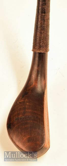 Walter Anderson of Royal Blackheath 1889 late long nose curved face brassie in dark stained Beechwood with wrap over sole plate, with an R Forgan St Andrews shaft stamp below the full length period grip with underlisting (heavy swing weight)