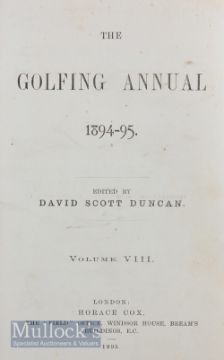 Duncan, David S – The Golfing Annual Vol III 1894-1895 Book in green boards with gold gilt title, light wear, otherwise in good overall condition