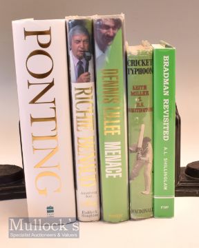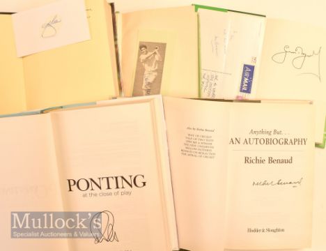 Selection of Signed Cricket Books to include Ponting at the close of play, Cricket Typhoon, Menace The Autobiography, Bradman Revisited, The Autobiography of Richie Benaud - all HB with DJs in good condition (5) – some having signatures on separate pieces of paper