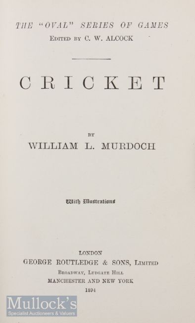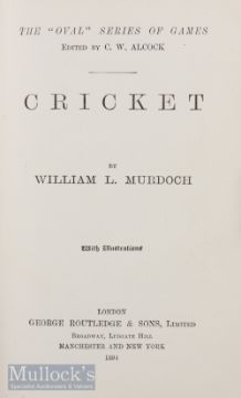 Cricket by William L. Murdoch 1894 first edition, published by George Routledge & Sons, 95 pages with 6 full page photographs of W.G. Grace and others detailing how to play the game, batting, fielding, bowling, captaincy etc, in green cloth board covers