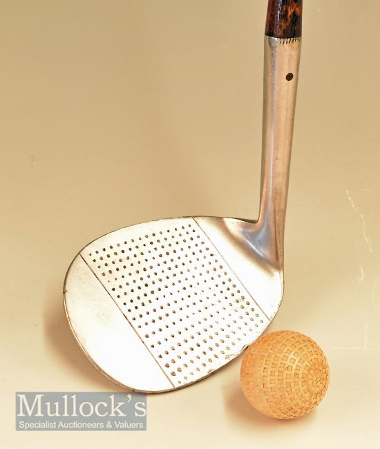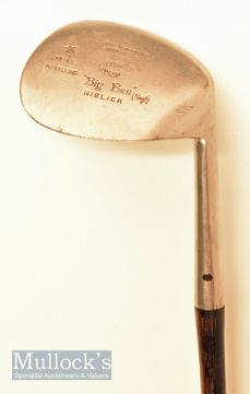 J J Fraser Inverness “Big Ben” mammoth niblick stamped with the Gibson Star cleek mark- the head measures 3.5” x 4.5” max with period full length leather grip