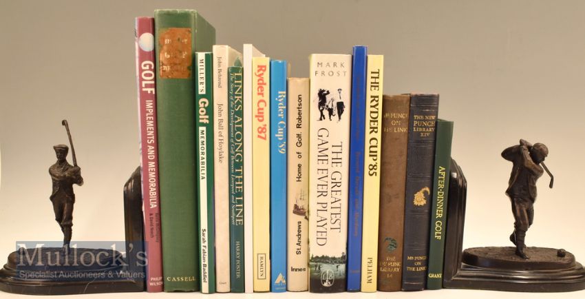 Assorted Golf Books titles include After Dinner Golf, Bernard Darwin and Aberdovey, The Ryder Cup 85, Ryder Cup 89, Ryder Cup 87, The Greatest Game Ever Played, A History of Golf in Britain, Golf Implements and Memorabilia, Millers Golf Memorabilia, St Andrews Home of Golf, John Ball of Hoylake, Links Along the Line et al – general condition mixed (19) Box