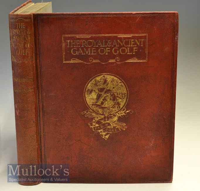 Hilton, Harold H and Garden G Smith – “The Royal and Ancient Game of Golf” subscribers ltd ed no 444/900 1st ed 1912 – in the original leather and gilt decorative boards and spine – numerous illustrations and colour plates – gilt edge pages – some dust stains to the boards – internally clean – otherwise (G) rare