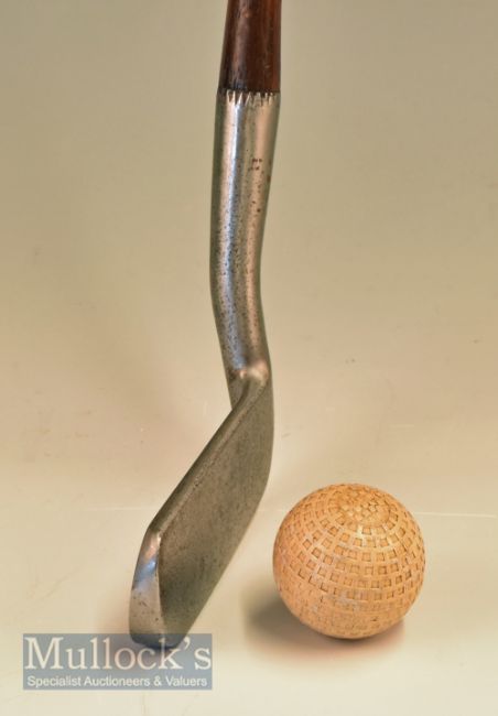 Scarce Tom Stewart Maker St Andrews Fairlie’s pat style blade putter with negative loft forward smooth face and stamped with early makers Pipe cleek mark - with indistinct oval shaft stamp just below the original thick hide grip with under listing-some very light pitting to the head nevertheless scarce