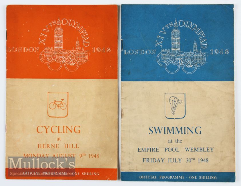 1948 London Olympics Cycling and Swimming Programmes (2) on August 9th and July 30th, both overall good with writing to insides (2)