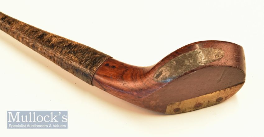 Fine W Park Patent Compressed head heavily bulged scare neck driver with good makers oval stamp mark to the crown and c/w the original thick hide grip with underlisting