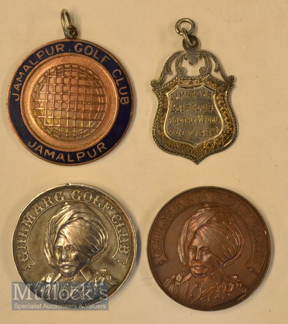 4x early India Silver and Bronze Golf Medals – large 1920 Gulmarg Golf Club (est.1890) silver hallmarked medal and a similar Bronze medal both 1.5” dia (35mm); a similar size Jamalpur Golf Club (est 1912) Bronze and Enamel medal with plain back; and 1938 Ramnagar Golf Club stamped silver medal engraved Monthly Medal July 1938. Note Gulmarg Golf Club was formed by British Pats living in India and is the 2nd oldest course in India after Royal Calcutta golf club and recognised as the highest golf course in the world at 3730m. Note: Part One – Golf Collection from “David Easby Estate”