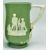 Spode Copeland Golfing Tankard: green tankard with white relief golfing figures and handle, height 17cm, with another similar with Fortuna back stamp having 2 large hairline cracks and overall crazing (2). From the estate of the late John Hanna.