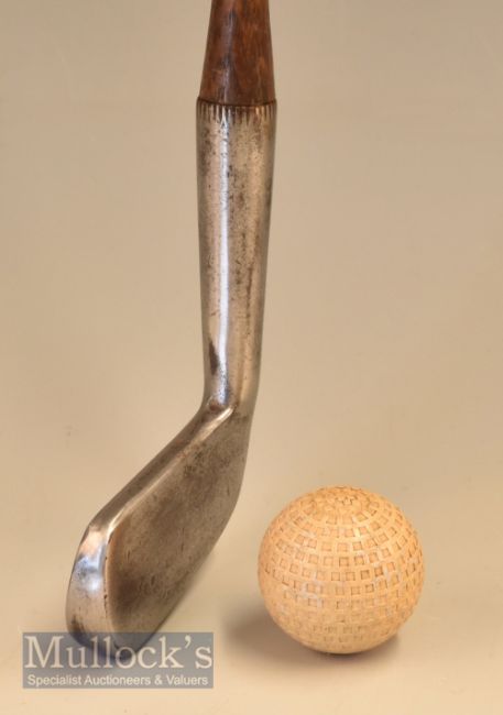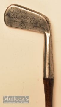 Anderson of Anstruther patent small chunky head negative loft putter stamped George Lowe St Annes on Sea with a patent No 5126 fitted with original leather grip with underlisting