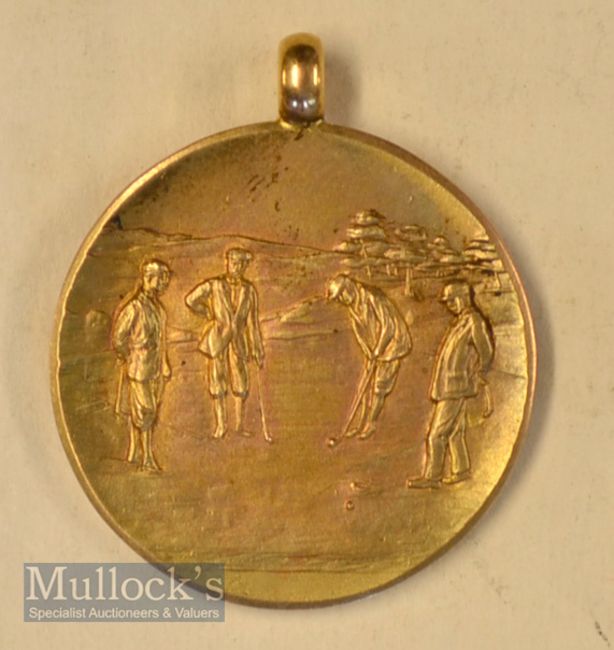 1928 Tobacco Challenge Bowl 9ct gold winners golf medal – with embossed Vic men’s golfing scene to the obverse and engraved on the reverse 1928 Winner of The Foursome Tobacco Challenge Bowl – T.B Anderson. Wt 7.2g. Note: Part One – Golf Collection from “David Easby Estate”