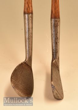 Tom Morris St Andrews mashie niblick with fine line face markings, together with a Tom Stewart “Class” iron with punch dot inspection mark, stamped C Butchart (2) – without grips