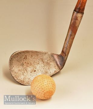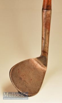 Fine Gibson of Kinghorn ‘Skoogee’ wide soled concave faced niblick fitted with a full length grip, stamped H L Sutton to shaft below grip in script