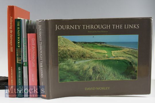 Daley, Paul – Golf Architecture A Worldwide Perspective together with Golf Courses by GetMapping, The Sunley Book of Royal Golf by Sir P Allen, Following the Fairways 1995 and Journey Through The Links by D Worley all HB with DJs, condition appears A/G overall (5)