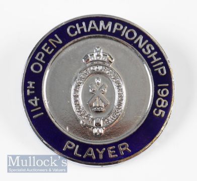 1985 Open Golf Championship Players Enamel Badge 114th Championship Royal St Georges Golf Club and won by Sandy Lyle