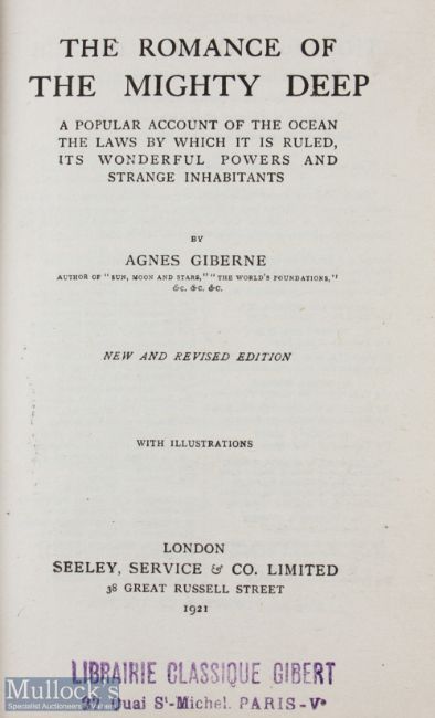 Giberne, Agnes – “The Romance of The Mighty Deep” 1921 new and revised edition, published by Seeley, Service & Co, illustrated with original decorated cloth binding