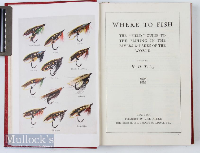 Turing, H D – Where to Fish, c1931, published by the Field, containing coloured plates of flies with large folding map and adverts, in original red cloth binding.