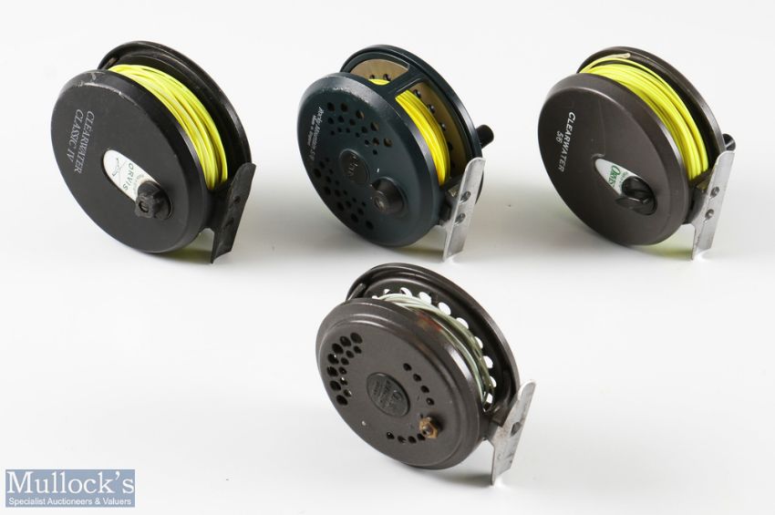 4x Orvis Fly Reels to include Rocky Mountain 5/6 fly reel, a Clearwater Classic IV 3 ½” fly reel, a Clearwater 5/6 3 3/8” fly reel and an Orvis Madison III D 3 ¼” fly reel – all loaded with line, appear with light signs of use in general, spin well and are ready to use
