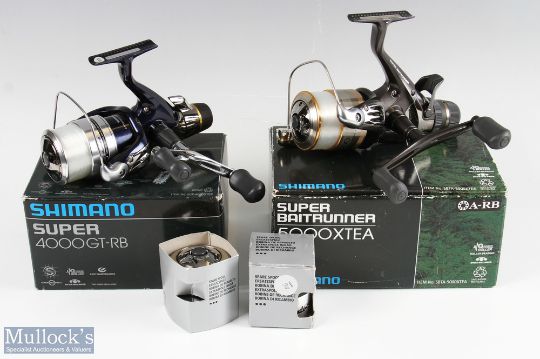 Shimano Baitrunner 5000 XTEA spinning reel and spare spool together with Shimano 4000GT-RB spinning reel and spare spool – both with maker’s boxes, appear unused (4)