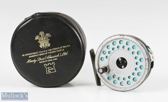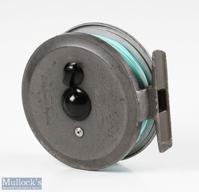 Hardy Bros England Viscount 140 Mark II 3 3/8” alloy fly reel with alloy foot, line guide, surface wear, runs smooth, with line and Hardy zip case